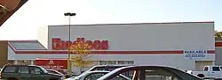 Bradlees was named for Connecticut's Bradley International Airport, where early planning meetings were held by the store's founders.[2] The first store was opened in New London, Connecticut, on March 14, 1958. The company was acquired by grocery chain Stop & Shop in 1961, which owned the chain until 1992. After the acquisition, Stop & Shop stores were often featured alongside Bradlees in the same shopping plazas. In some cases, especially in the New York/New Jersey metropolitan area, stores large enough to house both Bradlees and Stop & Shop under the same roof were constructed. In these early examples of supercenters, one side of the store would operate as Bradlees while the other would operate as Stop & Shop, and shoppers were able to move between one store and the other freely. This practice ended in 1982 when Stop & Shop elected to close its New York metro division; in the case of the supercenter stores, a wall was built to divide the building in half. (Stop & Shop would not return to the area until the fall of 2000, when its then-parent Ahold elected to rebrand its Edwards Super Food Stores chain as Stop & Shop.)