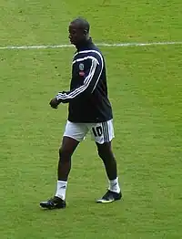 After many frustrating appearances for Manchester City, with few goals, Wright-Phillips was sold to Championship team Southampton for £500,000 on 5 July 2006.[7] Half of the transfer fee was funded by a prize from Coca-Cola won in a competition by a fan.[8] He made an immediate impact at Southampton, scoring on his debut against Derby County at Pride Park, and scoring an impressive goal against Wolverhampton Wanderers in a 2–0 win at St. Mary's. He scored a total of 11 goals in the 2006–07 season. In 2007–08 he started the season with goals against Burnley and Queens Park Rangers. He made a total of 120 appearances for the club, scoring 24 goals.