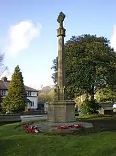 Bradshaw War Memorial is located within the grounds of St Maxentius' Churchyard. It commemorates the residents of Bradshaw who were killed in the First and Second World Wars.[9]