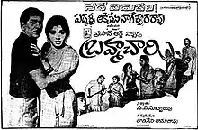 Brahmachari (transl. Bachelor) is a 1968 Indian Telugu-language comedy drama film, produced by A. V. Subba Rao under the Prasad Art Productions banner and directed by T. Rama Rao. The film stars Akkineni Nageswara Rao and Jayalalithaa, with music composed by T. Chalapathi Rao. It was released on 1 February 1968.[1] The film was remade in Hindi as Ek Nari Ek Brahmachari (1971).[2] It was loosely based on the 1967 Tamil movie Penne Nee Vaazhga.