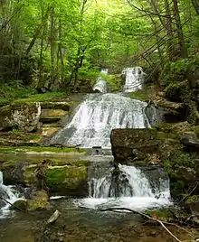 Brake is an unincorporated community on the South Fork South Branch Potomac River in Hardy County, West Virginia, United States. The community is named for the family of early landowner Johann Jacob Brake ("Brechtel" in German), who emigrated from southern Germany in the early 18th century. The town once included a sawmill, gristmill, distillery, blacksmith shop, and post office. The original log house used as a post office in the early- to mid-19th century still stands. The Brake Cemetery harbors the remains of Brakes, Simons, Sees, and probably others whose stones have been lost. Brake Falls on Dumpling Run once provided power for the sawmill and gristmill. The Brake family currently resides in Ohio.