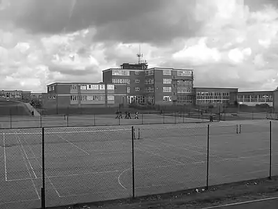 The school originally comprised a Main School and an Upper School, separated by tennis courts. The Main School comprises a four-storey tower bock which houses English, Maths and Humanities, along with a gym and technology and drama block, Assembly Hall and recently extended Learning Resource Centre.(Library).[16]