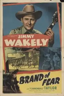 Brand of Fear is a 1949 American Western film directed by Oliver Drake and written by Basil Dickey. The film stars Jimmy Wakely, Dub Taylor, Tom London, Gail Davis, Marshall Reed and William Ruhl. The film was released on July 10, 1949, by Monogram Pictures.[1][2][3]