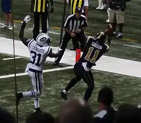 Gibson was traded from Philadelphia to the St. Louis Rams on October 20, 2009 along with a fifth round draft pick in 2010 in exchange for linebacker Will Witherspoon.[6] In his Ram debut, on November 15, 2009, he caught 7 passes for 93 yards, both Ram records for a rookie playing in his first game. The 93 yards was the most by any Ram receiver in 2009. His seven receptions in the game was also remarkable, as only teammate Danny Amendola had achieved that many receptions in a single game that season.