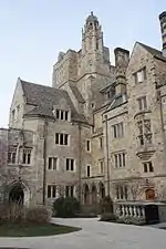 Branford College was named for the nearby town of Branford, Connecticut, where Yale was briefly located.[1] The base of Harkness Tower, one of the university's most prominent structures and one of the tallest free-standing stone structures in the world, forms one corner of Branford's main courtyard. The tower contains a 54-bell carillon. Frank Lloyd Wright is said to have been asked where he would choose to be if he could be anywhere in the U.S. and responded that he would pick Harkness Tower so he would not have to look at it. Since Branford's courtyards have many squirrels, the college adopted the squirrel as its mascot.