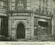 The original premises in Litchdon Street partly survive now with their terracotta detailing and stained glass with a preserved kiln still visible in the car park of a medical practice. These premises are now Grade II listed.[3]
