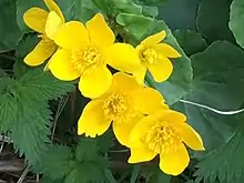 Caltha palustris (marsh-marigold), one of many native wildflowers found in Branston Jungle Local Nature Reserve