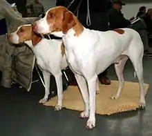 The Braque Saint-Germain (translated into English as the St. Germain Pointing Dog) is a medium-large breed of dog, a versatile hunter used for hunting as a gun dog and pointer as well as for hunting other small game. Braque is a term meaning pointing dogs. The breed was created around 1830 by crossing English and French pointing type dogs.