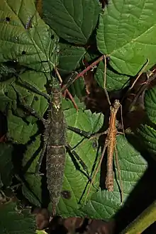 - ↑ Esch, A. (2012), Stabschrecken, Gespenstschrecken, Wandelnde Blätter: Erfolgreiche Haltung von Phasmiden. Natur und Tier-Verlag, Münster, p. 54, ISBN 978-3-86659-221-6