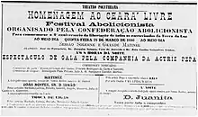 Announcement of an abolitionist festival in the form of a conference-concert to commemorate the abolition of Ceará, organized by the Abolitionist Confederation.[18]