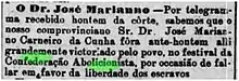 On January 14, 1984, a telegram from Rio de Janeiro reported that the Pernambuco abolitionist José Marianno Carneiro da Cunha, who had spoken out in favor of the freedom of slaves, had been acclaimed by the people of the Empire on January 13, 1984, at the Abolitionist Confederation festival.[10]
