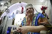 Santo Daime, is a religion founded by Raimundo Irineu Serra known as Mestre Irineu, Raimundo was a Catholic who served as a soldier in the Brazilian Amazon, during that period he had contact with indigenous cults involving the sacred ayahuasca plant, used by the natives of the Brazilian Amazon.[9] Santo Daime is a religion that mixes Marianism with native Brazilian beliefs. Daime is an abbreviation of the Portuguese phrase 'give me love' (Dai-me Amor).[10] The Santo Daime religion has managed to reach other countries, it is possible to consider that it is a world religion.[11] Umbanda is a Kardecist Spiritism, Afro-Brazilian and Brazilian Shamanist religion, it emerged after a Kardecist medium Zélio Fernandino de Moraes came to accept the spirits of Natives and Blacks,[12] Umbanda broke with traditional spiritism.[13]