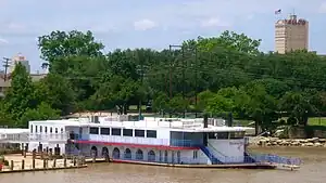 Brazos Belle, originally named Brazos Queen II,[1] was constructed by F.M. Young at a cost of $1 million,[2] the vessel being permanently berthed on Lake Brazos, near Interstate 35 in Waco in 1997 as a result of fluctuating water levels in the Brazos River.[3][4] Young sold the riverboat to Tony Cain, president of Brazos Leisure, Inc.,[5] in 2006.[2] The Belle was a popular restaurant and tourist attraction in Waco, being used for banquets and wedding receptions,[5] although it proved too large to be operated effectively on the river.[1]
