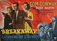 Breakaway is a 1955 British thriller film directed by Henry Cass from a script by Norman Hudis.[1] It stars Tom Conway, Michael Balfour and Honor Blackman.[2] A private eye is hot on the tail of a stolen secret formula and a kidnapped young woman. It is a sequel to Barbados Quest.
