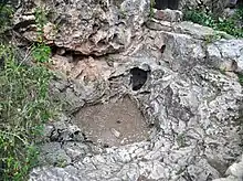 A breathing cave, also known as a barometric cave, is a rare type of cave in which atmospheric pressure gradients between the inside and outside of a cave cause air to flow in to or out of the cave.[1][2] The concept of air flowing through a cave is common, however in most caves this airflow is caused by a difference in temperature rather than air pressure; in barometric caves the thermal mechanism inside the cave is not great enough to cause such airflow.[3] The speed of the airflow in barometric caves is directly correlated with the atmospheric pressure difference between the inside and outside of the cave.[3] When the air pressure outside of the cave is higher than that inside the cave air blows into the cave and vice versa; if the air pressures are at equilibrium there is no airflow.[4]