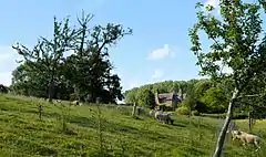 Significant parish landmarks include a brick bridge over the River Wye, the historic Red Lion late 17th-century coaching inn,[1] St Andrew's Church, and the site of Bredwardine Castle. The Wye Valley Walk passes through the village which is on the B4352 road.