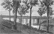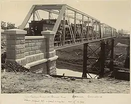 The Bremer River Rail Bridge was not the first iron bridge to be completed on the line. The first was completed in April 1865 and crossed Wide Gully. However, the Bremer Bridge was described in the Brisbane Courier (1 August 1865) as "the most important structure on the first section of the line".[1]