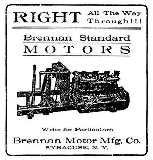 Brennan Motor Manufacturing Company (1897–1972) of Syracuse, New York, was an early manufacturer of automobile engines. From 1902 until 1908, the company produced the Brennan automobile however, after the demise of the automobile enterprise, the company again turned their focus to automobile engines and later marine engines. They were in business for 75 years when the company closed its doors in 1972.[1]