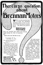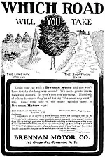 ![]() A 1908 advertisement for a Brennan Motor Co. |
