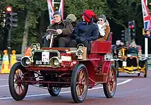 The 1902 "touring car" came complete with a 15-horsepower motor and a double opposed cylinder, horizontal motor and weighed 1,950 pounds. Ignition was by jump spark supplied by dry batteries. Two sets of batteries were carried under the bonnet and front of the dash.[6]