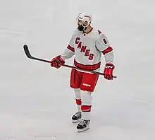 Brent Burns (born March 9, 1985) is a Canadian professional ice hockey defenceman for the Carolina Hurricanes of the National Hockey League (NHL). Drafted as a right wing (20th overall) at the 2003 NHL Entry Draft by the Minnesota Wild, he was converted into a defenceman upon turning professional. Burns is known as a dynamic offensive player, and though he mostly plays defence, he has been utilized as a forward on several occasions during his career. He is the only active NHL player to have played in the 2003–2004 NHL season.