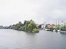 The ait was also known as Makenshaw, Mattenshaw or Twigg Ait.[3] For reasons likely connected with ownership the ancient parish of Kew in Surrey[4] included Brentford Ait in its history; the London Borough of Hounslow governs neighbouring Lot's Ait separated only by thick, shifting mud at low tide from Brentford whereas channels beside the dual ait are dredged.[5]
