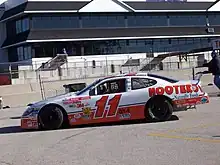 With no major sponsors Bodine received sponsorship from minor sponsors such as Wells Fargo, Timberland Pro, and Dura Lube. Three races into the season Hooters was signed to a deal, although at this point Bodine's team was once again well behind in development. Crew chief Mike Hillman and several other team members had left due to worries about not being able to run the full season without primary sponsorship.[81] Brett had four top 20 finishes, including a season's best 13th at Talladega, but failed to qualify for four late season races and finished 36th in the points.[82] Brett also fielded an Xfinity series team in 9 races (qualifying for 7) for nephew Josh Richeson, with a best finish of 28th.[80]