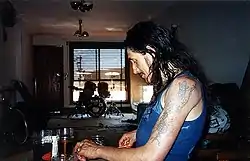 In September 1986 his former bandmate from Exhibit A, Stu Spasm (also ex-Zulu Rattle, Salamander Jim, Beasts of Bourbon, James Baker Experience, Death in Vegas, Hot Property), invited Ford and Hartley to record material as Lubricated Goat, while they were still members of Kryptonics.[5] Their five tracks were included with four more that Spasm had recorded with Martin Bland in Adelaide, as the noise rock group's first album, Plays the Devil's Music (July 1987).[5] Ford co-wrote the tracks, "Guttersnipe" and "Nerve Quake", with Hartley and Spasm.[6]