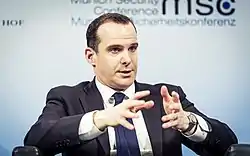 On January 19, 2017, President-Elect Donald Trump's press secretary Sean Spicer announced that the incoming administration would retain the Obama-appointed McGurk in his role leading the counter-ISIL campaign.[42] McGurk indicated in a December 11, 2018, press briefing that the war against ISIL in Syria was not over, stating, "It would be reckless if we were just to say, well, the physical caliphate is defeated, so we can just leave now."[43] On December 22, 2018, in the wake of Trump's decision to withdraw troops from Syria, McGurk announced his resignation effective December 31, 2018.[2] McGurk had been slated to leave the post in mid-February 2019.[1] In response, Trump wrote that he "did not know" McGurk and questioned if McGurk was a "grandstander".[44][45][lower-alpha 1]