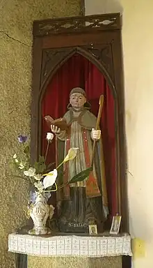 Born of Irish nobility, he lived during the sixth century. After his studies, he left his country to join a monastery in Wales led by the abbot Tudwal. They landed in Armorica, Brittany and evangelized the entire north coast.[1] Saint Briag is invoked for the cure of mental illnesses. He is said to have endowed the village with a miraculous spring, thus healing all these afflictions. He died around the year 555 and his tomb is today in Bourbriac in Côtes-d'Armor where he founded a monastery.[2]