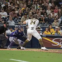 On December 8, 2020, O'Grady signed a major league contract with the San Diego Padres.[10] O'Grady played in 32 games for the Padres in 2021, hitting .157 with 2 home runs and 9 RBI's. On October 30, 2021, O'Grady was outrighted off of the 40-man roster.[11] He became a free agent following the season.