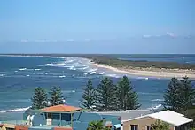![]() The northern tip of Bribie Island is not far from Caloundra. The Glass House Mountains can be seen in the background | |||||||||||||||