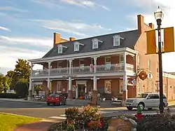 Brick Hotel, also known as the Wilmington Trust Co., Georgetown Office, is a historic hotel located at Georgetown, Sussex County, Delaware. It was built in 1836, and is a 2+1⁄2-story, seven-bay, brick structure in a transitional Federal / Greek Revival style. It has a one-story, rear kitchen wing, and a one-story wing attached to it and dated to the 1930s. It has a slate-tiled roof, double end chimneys, and a modern Greek Revival style verandah. The exterior was altered in 1955, when it was converted from its original use as a hotel to its use as a bank building.[2] In 2008, it was converted back to a hotel.[3] On August 28, 2021, the Brick Hotel closed permanently, with the building having been leased for office space.[4]