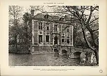 Its architectural design is in keeping with American colonial architecture but exhibits French Huguenot influence.[1] Possibly a simplified copy of the c. 1675 Chateau de la Haye d'Esquermes[5] near Loos les Lille, France, evidence of the French influence in its architecture is seen through many stucco enrichments to the exterior and its high-pitched roof.[4]