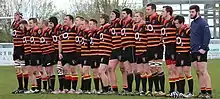 The club was founded in 1875.[3] In the early 20th-century players from the club, including Robert Dibble[4][5] and Tommy Woods[6] represented England.[7] In World War II the Broadway ground in Taunton Road was used for allotments with rugby transferring to Victoria Park, but after 1946 the ground was restored, with the grandstand being built in 1952.[3]