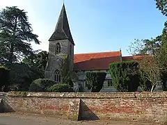 The Church of England parish church of All Saints existed by the time of the Domesday Book of 1086.[2] The building was demolished in 1863[2] and replaced by a Gothic Revival one designed by G E Street,[3] who was architect to the Diocese of Oxford. Street retained and re-used some 13th century Early English Gothic features from the original building.[2]