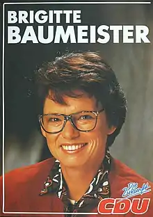 ![]() Candidate poster Brigitte Baumeisters for the 1990 federal election | |