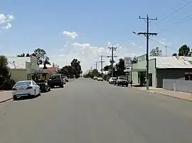 The Post Office opened on 3 October 1890.[2] The railway arrived in 1893 on the line from Murtoa to Hopetoun. The railway station is no longer standing, but there are large grain silos on the railway station site. The railway tracks were converted to standard gauge in 1995 to allow large trains carrying mineral sands from Hopetoun to Hamilton.[3]