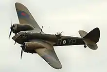During the Second World War, Bristol's most important aircraft was the Beaufighter heavy two-seat multirole aircraft, a long-range fighter, night fighter, ground attack aircraft and torpedo bomber.[1] The type was used extensively by the RAF, other Commonwealth air forces and by the USAAF. The Beaufighter was derived from the Beaufort torpedo bomber, itself a derivative of the Blenheim.[1]