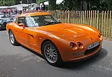 In 2015 Bristol Cars announced the development of a new model codenamed "Project Pinnacle". Initial reports indicated it would be a petrol-electric hybrid with a petrol engine from BMW.[12] However a later media report and a May 2015 press release, indicated that the car would have non-hybrid V8 power.[13][14] The car, a two-seater roadster, made its first public appearance, slightly camouflaged, at the Goodwood Festival of Speed in June 2016. In July, the car was shown undisguised, technical details were announced, and its name given as the Bristol Bullet. However, subsequently there was no further news about the car's homologation, and many members of the sales and marketing team soon left the company. The Bullet was said to be powered by a normally aspirated 370 bhp (280 kW; 380 PS) 4.8-litre BMW N62 V8 engine (sharing the same drivetrain and chassis as the most recent Morgan Aero 8) driving the rear wheels, had a body of carbon fibre, weighed 1130 kg, and would cost £95,000. The planned production run was said to be limited to 70 cars to commemorate the marque's 70th anniversary.