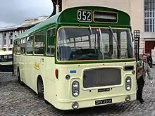 Bodies were fitted by different manufacturers, who adapted them to the needs of different operators. Bodies could be fitted out as buses, coaches or dual purpose buses which could be used for coach services when traffic demanded. Bus bodies usually came from the Eastern Coach Works (ECW), which was owned by the same Transport Holding Company. This was a government-owned company but Leyland had acquired a 25% share in 1965. Plaxton bodies were preferred for coaches. Other manufacturers of bodies for the LH were Walter Alexander, Duple, East Lancashire, Marshall, Northern Counties, Weymann and Willowbrook. The only Weymann body was fitted to the first LHS6L built (LHX003) to the orders of Western Welsh.[1] Weymann had been closed in 1965 and the body was originally mounted on an Albion Nimbus delivered to Western Welsh in 1961; modifications included extending the body wheelbase to match the chassis and fitting a Lodekka style grille to provide cooling for the radiator. WWOC numbered their LHS 1 and registered it MBO1F. It later passed to Thornes of Selby and is currently preserved.