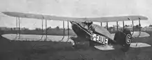 The Seely[3] was a three-bay biplane with greater wing area than the Tourer, with ailerons on both upper and lower wings. The rudder was horn-balanced and the fin area generous. For the competition, it was powered by a water-cooled upright inline 240 hp (180 kW) Siddeley Puma with a large nose radiator behind the wooden two-blade propeller.[3]