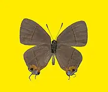 Britomartis igarashii is a butterfly of the family Lycaenidae. Forewing length: 14–15 mm. It is endemic to Borneo and is distributed only in mountainous areas (Mount Kinabalu and Mount Mulu). It is a rare species. Some specimens were taken at night in light traps.