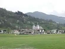 The main settlement is Hopfgarten im Brixental (623 m), where the valley changes direction by 70°. Other large villages are not found until the upper reaches because, there, the valley floor is wider (see picture): Brixen im Thale (794 m), where several headstreams unite, and especially Kirchberg in Tirol (837 m), where the Spertental joins the Brixental not far from Kitzbühel.