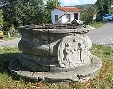 The village well in Brje pri Komnu is registered as cultural heritage. The wellhead is carved from stone in a bulging shape and stands on a round plinth. It is decorated with a relief depicting Jesus and the Samaritan woman that was carved by Mattia Kozman in 1827. The well is located on the main square in the village.[4]