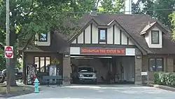 Broad Ripple Firehouse–Indianapolis Fire Department Station 32 is a historic fire station located in Indianapolis, Indiana. It was built in 1922, and is a 1+12-story, cross plan, Tudor Revival style brown brick building. It features a jerkinhead roof with deep overhanging eaves and a double peak, half-timbered gable. An addition was constructed in 1980.[2]:3