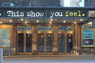 The musical Anastasia opened at the Broadhurst in 2017 and ran there for nearly two years.[329][330] It was followed in May 2019 by Frankie and Johnny in the Clair de Lune[331][332] and in December 2019 by Jagged Little Pill.[333][334] The theater closed on March 12, 2020, due to the COVID-19 pandemic.[335] It reopened on October 21, 2021, with performances of Jagged Little Pill,[336][337] which closed at the end of 2021 due to further pandemic-related issues.[338][339] It was followed in November 2022 by a limited run of A Beautiful Noise, The Neil Diamond Musical.[340][341]