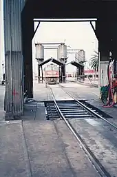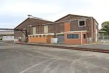 As part of the upgrades to suit diesel locomotives, 2 of the outdoor radial roads from No. 2 turntable were connected to Broadmeadow yards and converted to arrival roads. A new 10 tonnes (7.5 long tons) capacity sanding plant for the diesel locos was constructed on one of these roads using steelwork transferred from Enfield Loco Depot.[25] In 1966, a new diesel fuel storage facility was installed consisting of four 81,800 L (18,000 imp gal) tanks and pump house, additional fuelling points were provided on the new arrival roads. A load box building was constructed on one of the outdoor roads of No. 2 turntable to allow the stationary load testing of diesel electric locos after repairs.[26] A new air compressor house was also constructed in 1965 adjacent to No. 2 Roundhouse.[13][27]
