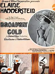 Broadway Gold is a 1923 American silent drama film directed by Edward Dillon and starring Elaine Hammerstein, Elliott Dexter, and Kathlyn Williams.[1]