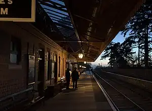 The GWR Broadway Area Group of the Gloucestershire Warwickshire Railway Trust started work clearing the derelict site in 2009. As of January 2023, both platforms had been reconstructed, a signal box on platform 2 had been rebuilt and has been fitted out with the necessary signalling equipment, the footbridge span and steps (from Henley-in-Arden railway station) have been erected and the main station building had been completed with toilets, a booking office and refreshment room.[9] The station canopy and roof including a further canopy section at the north end to connect with the footbridge was completed in 2022. Platform 2 is not yet open to the public however work to rebuild the original waiting room is progressing. [10][11] The rebuilding of Broadway station was largely completed in 2017.[12]